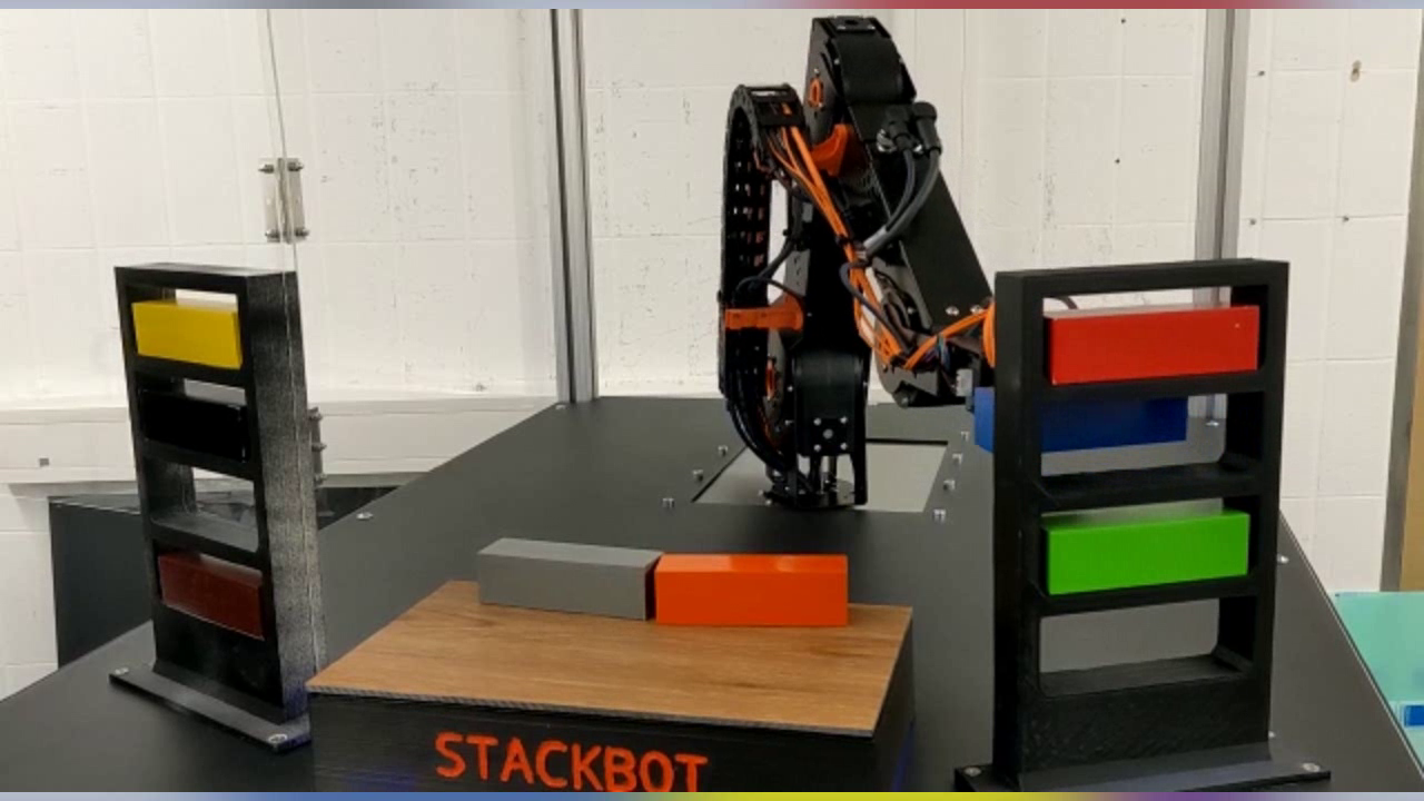 该学生项目旨在使用机器人复刻Make 'n' Break游戏,新游戏是两个玩家比赛堆积木。只不过此处的其中一个玩家被关节机器人取代,即StackBot积木堆叠机。学生们记录了所有操作步骤。通过延时摄影,所有步骤都通过台架和控制柜、机器人和编程来实现。 该项目展示了低成本机器人在教育领域的重要性。在它们的帮助下,学生们可以将理论知识应用于实践并发挥创造力。最终就有了这款创新、功能出色的产品。